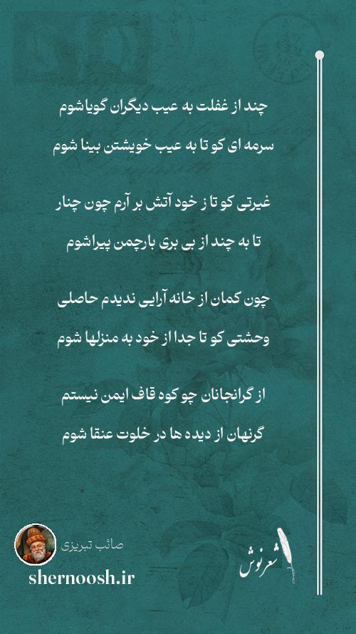1 چند از غفلت به عیب دیگران گویاشوم سرمه ای کو تا به عیب خویشتن بینا شوم