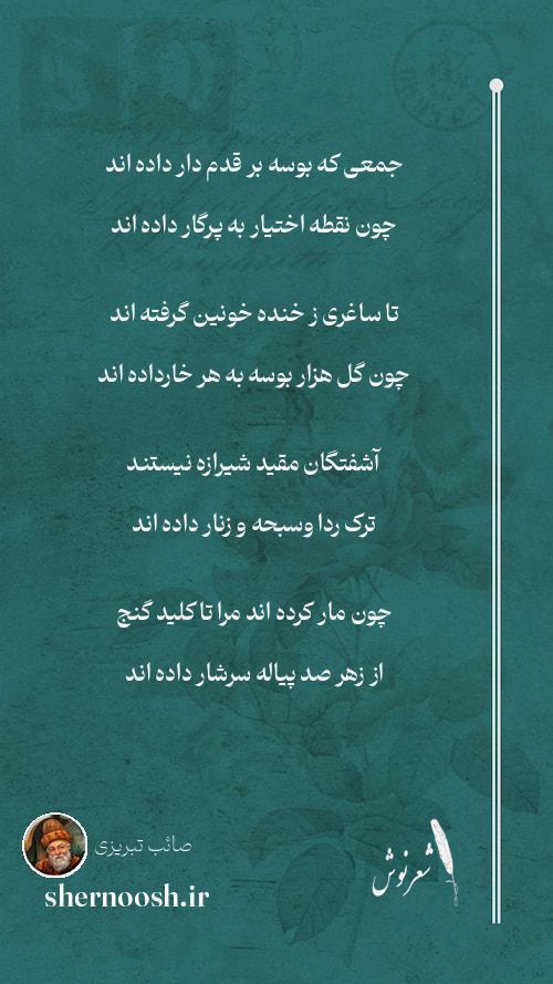 10 صائب ز روی صبح گشایش طمع مدار کاین فیض را به زلف شب تار داده اند