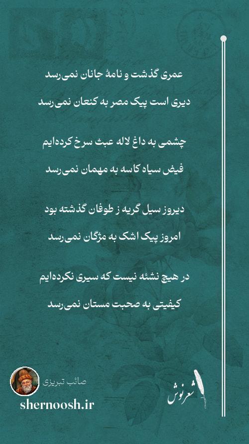 1 عمری گذشت و نامهٔ جانان نمیرسد دیری است پیک مصر به کنعان نمیرسد