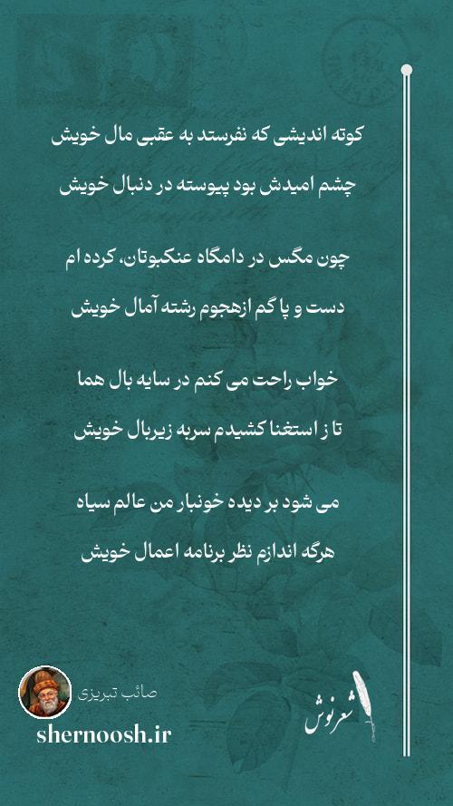 3 خواب راحت می کنم در سایه بال هما تا ز استغنا کشیدم سربه زیربال خویش