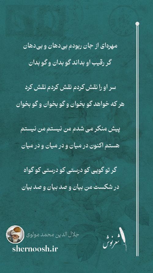 1 مهرهای از جان ربودم بیدهان و بیدهان گر رقیب او بداند گو بدان و گو بدان