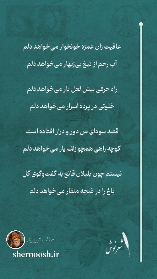4 نیستم چون بلبلان قانع به گفتوگوی گل باغ را در غنچه منقار میخواهد دلم