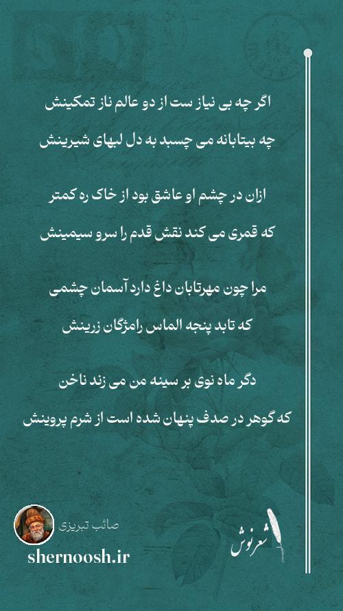 7 نگین را در نگین دان رتبه دیگر بود صائب اگر باور نداری سیر کن درخانه زینش