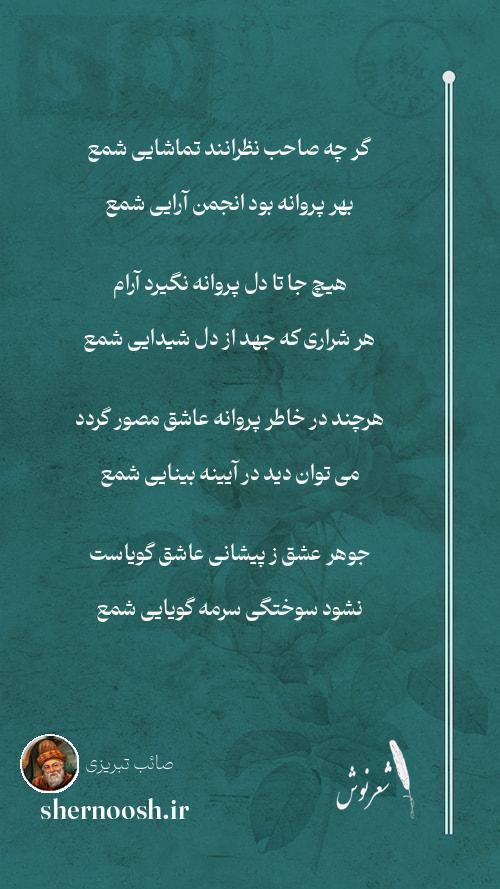 1 گر چه صاحب نظرانند تماشایی شمع بهر پروانه بود انجمن آرایی شمع