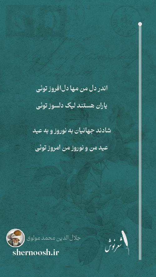 2 شادند جهانیان به نوروز و به عید عید من و نوروز من امروز توئی