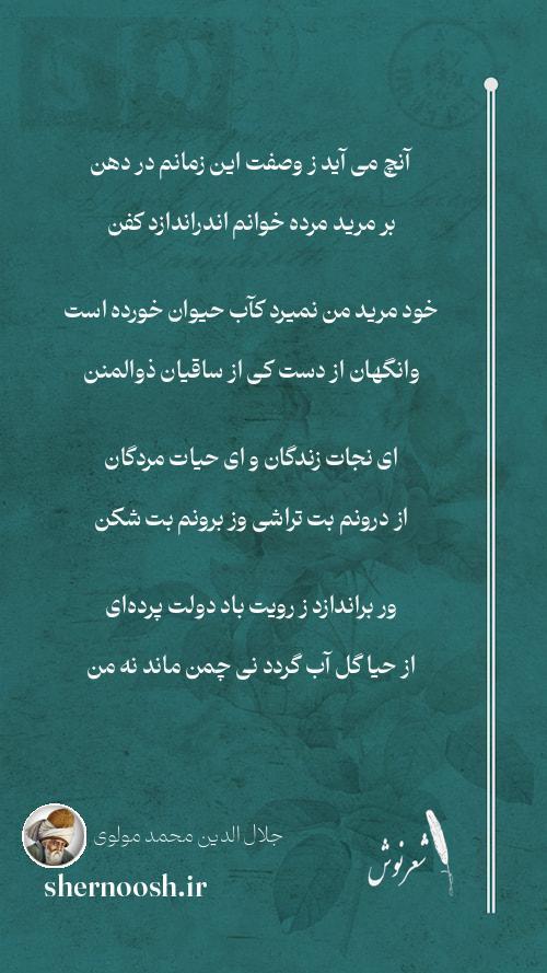 1 آنچ می آید ز وصفت این زمانم در دهن بر مرید مرده خوانم اندراندازد کفن