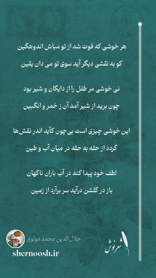 1 هر خوشی که فوت شد از تو مباش اندوهگین کو به نقشی دیگر آید سوی تو می دان یقین