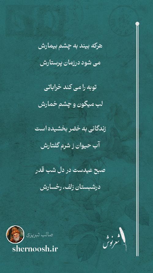 13 قامت اوست سر خط صائب چون نگردد بلند گفتارش ؟