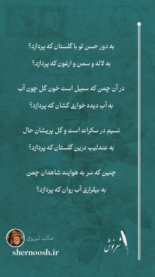 1 به دور حسن تو با گلستان که پردازد؟ به لاله و سمن و ارغون که پردازد؟