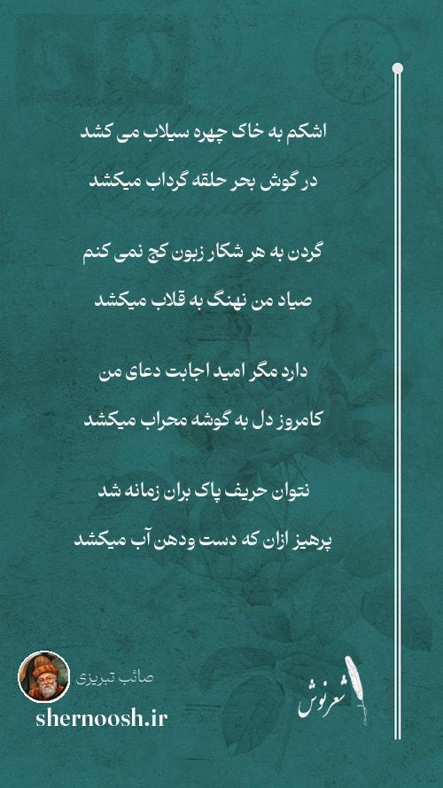 1 اشکم به خاک چهره سیلاب می کشد در گوش بحر حلقه گرداب میکشد