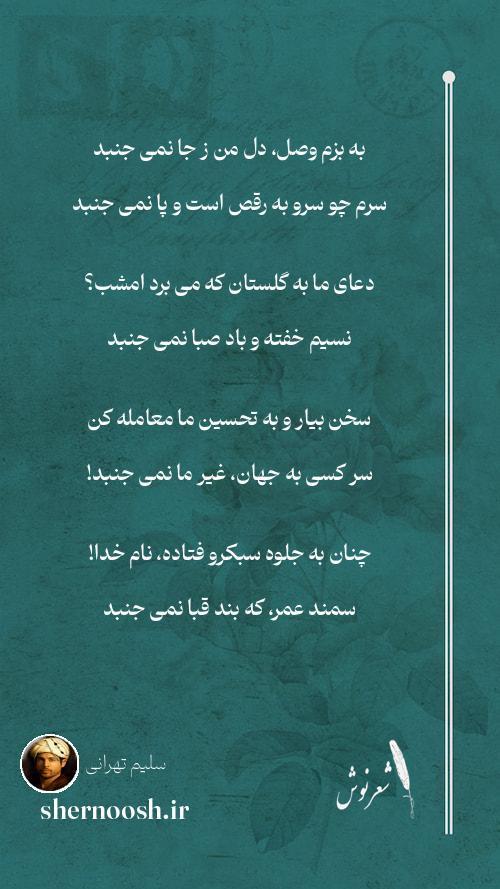 5 سلیم ز آمدنش دل همین نه مضطرب است ببین ز رعشه ی شوقم کجا نمی جنبد
