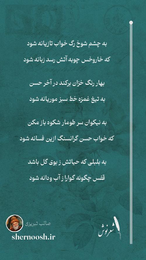 1 به چشم شوخ رگ خواب تازیانه شود که خاروخس چوبه آتش رسد زبانه شود