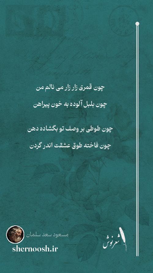 1 چون قمری زار زار می نالم من چون بلبل آلوده به خون پیراهن