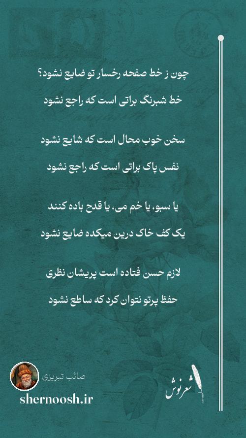 1 چون ز خط صفحه رخسار تو ضایع نشود؟ خط شبرنگ براتی است که راجع نشود