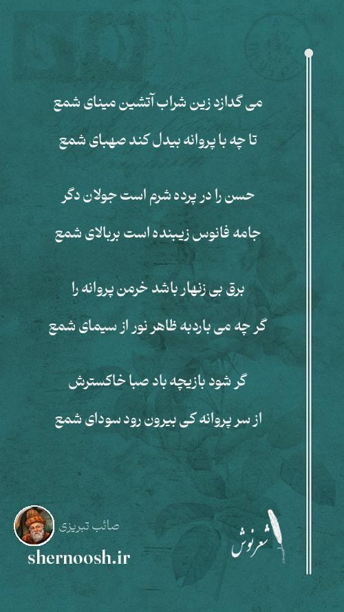 3 برق بی زنهار باشد خرمن پروانه را گر چه می باردبه ظاهر نور از سیمای شمع