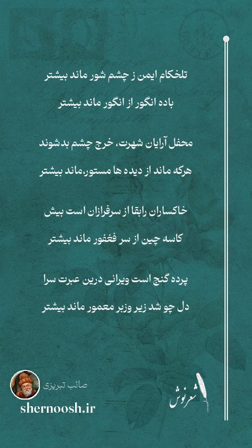 9 نوش ونیش این جهان تلخ صائب باهم است خانه پرشهد از زنبور ماند بیشتر