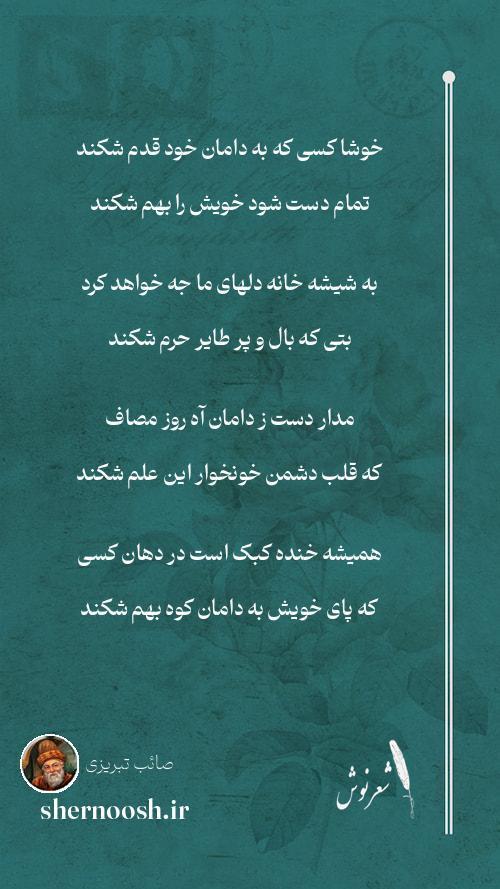 1 خوشا کسی که به دامان خود قدم شکند تمام دست شود خویش را بهم شکند