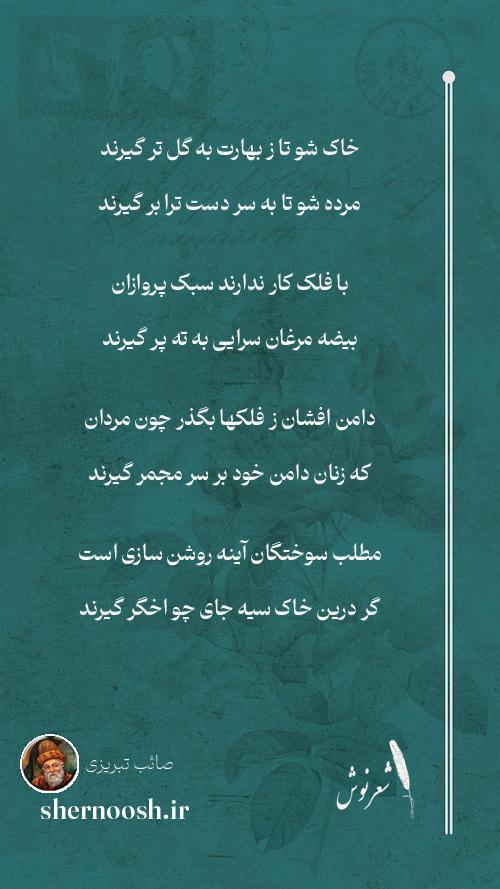 1 خاک شو تا ز بهارت به گل تر گیرند مرده شو تا به سر دست ترا بر گیرند