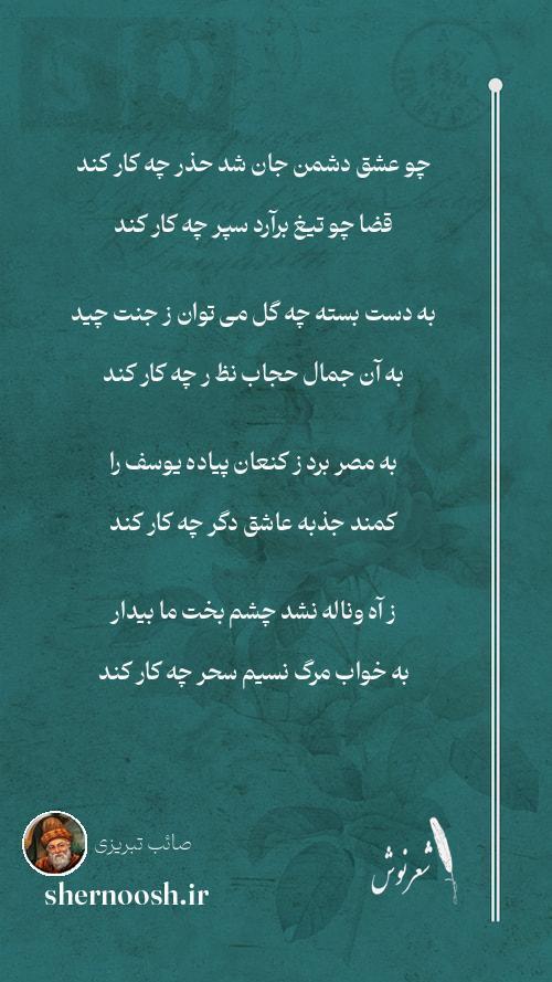 1 چو عشق دشمن جان شد حذر چه کار کند قضا چو تیغ برآرد سپر چه کار کند