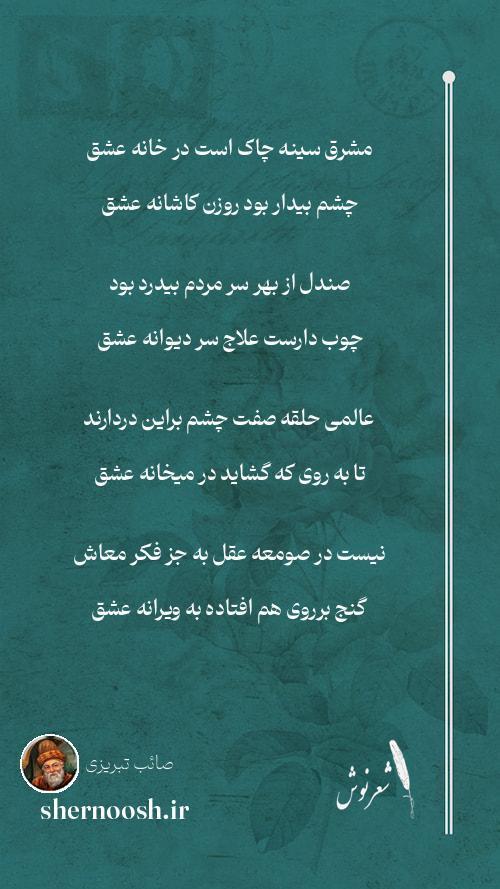 15 تا دل خونشده ات آب نگردد صائب نیست ممکن که برومند شود دانه عشق