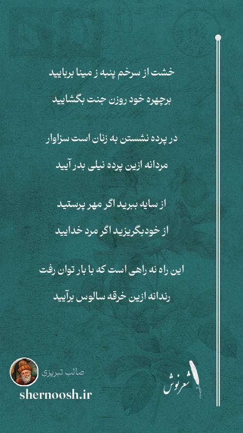 2 در پرده نشستن به زنان است سزاوار مردانه ازین پرده نیلی بدر آیید