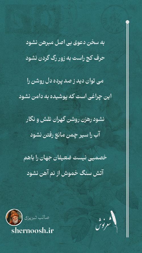 4 خصمیی نیست ضعیفان جهان را باهم آتش سنگ خموش از نم آهن نشود