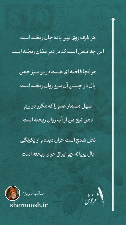 2 هر کجا فاخته ای هست درین سبز چمن بال در جستن آن سرو روان ریخته است