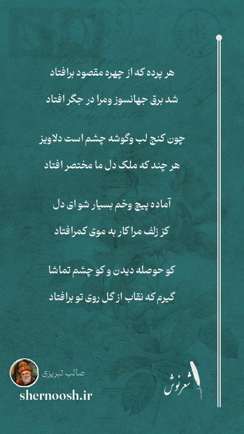 1 هر پرده که از چهره مقصود برافتاد شد برق جهانسوز ومرا در جگر افتاد