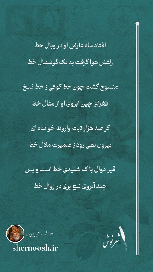 7 صائب چه دولتی است که روشن نموده است چشمم سواد خط غبار از خیال خط