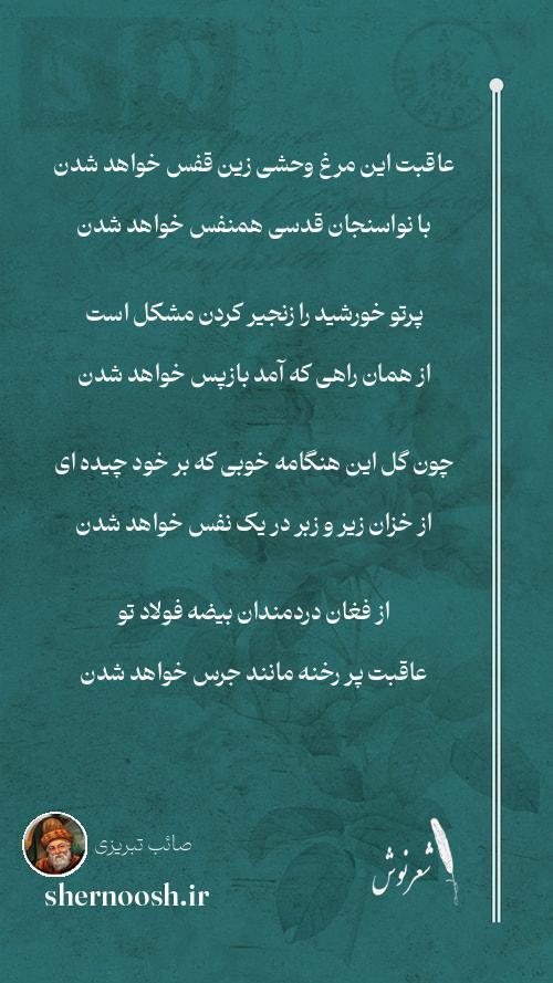 11 در خزان ناامیدی ها دل سنگین تو بر مراد صائب آتش نفس خواهد شدن