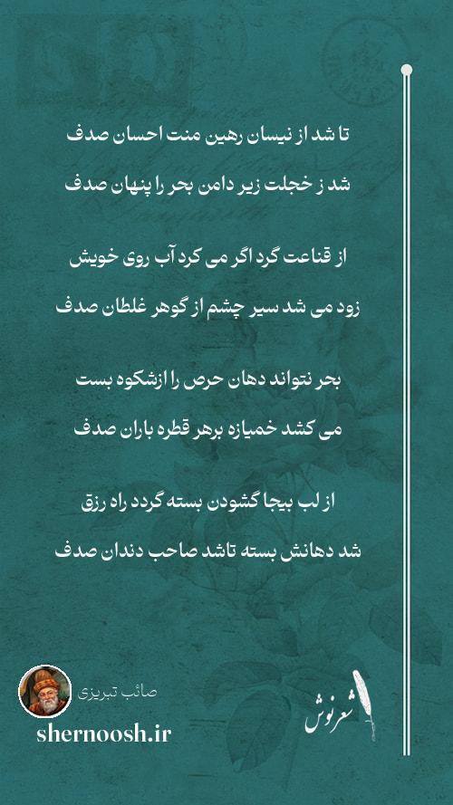23 می دهد صائب حباب از پوچ گویی سربه باد بالب خاموش آسوده است از طوفان صدف