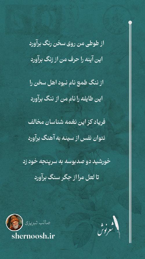 2 از ننگ طمع نام نبود اهل سخن را این طایفه را نام من از ننگ برآورد