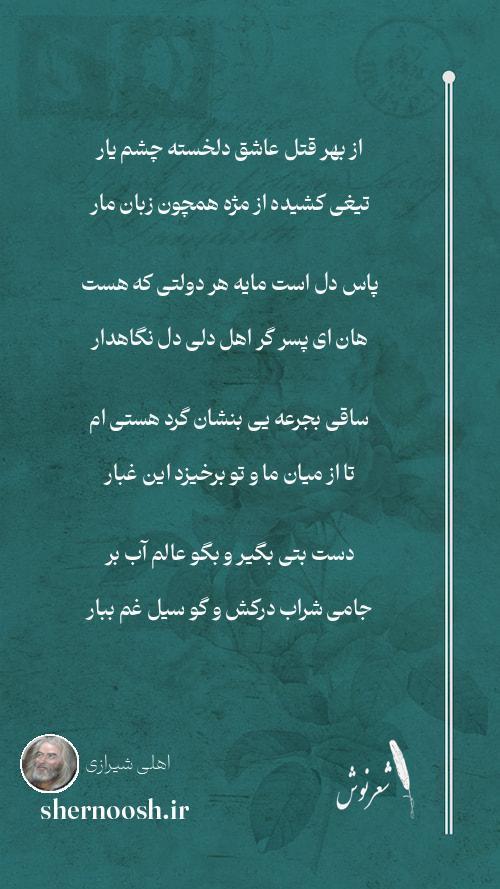6 از روز هجر شکوه چو اهلی نمی کنم شکر خدا که شمع شب افروزیم دگر