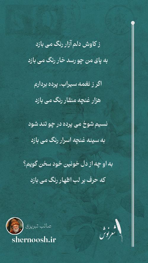 3 نسیم شوخ می پرده در چو تند شود به سینه غنچه اسرار رنگ می بازد