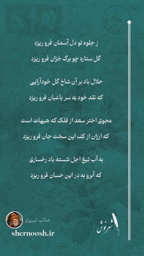 1 ز جلوه تو دل آسمان فرو ریزد گل ستاره چو برگ خزان فرو ریزد