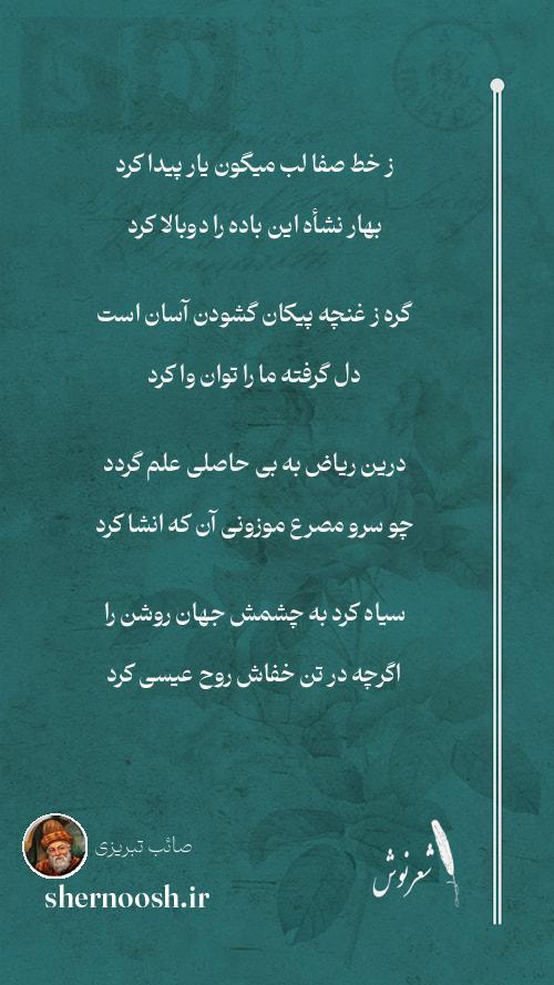1 ز خط صفا لب میگون یار پیدا کرد بهار نشأه این باده را دوبالا کرد
