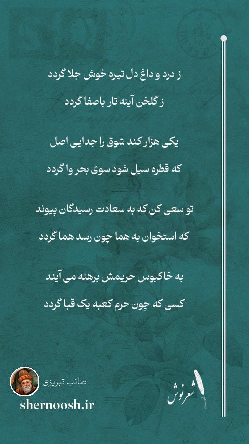 1 ز درد و داغ دل تیره خوش جلا گردد ز گلخن آینه تار باصفا گردد