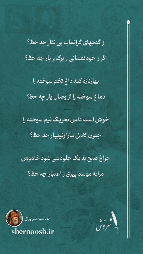 9 ترا که غم نگرفته است درمیان صائب ز مهربانی یاران غمگسار چه حظ؟