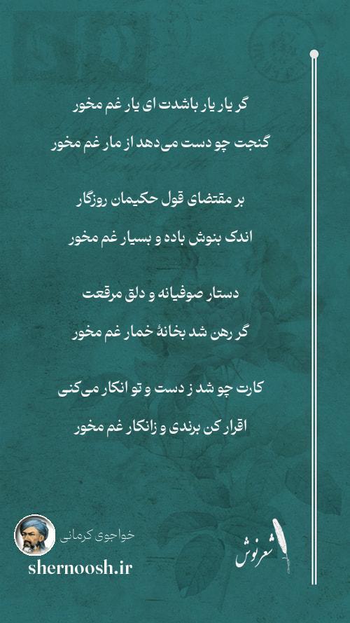 1 گر یار یار باشدت ای یار غم مخور گنجت چو دست میدهد از مار غم مخور