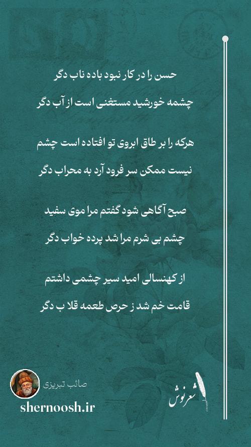 1 حسن را در کار نبود باده ناب دگر چشمه خورشید مستغنی است از آب دگر