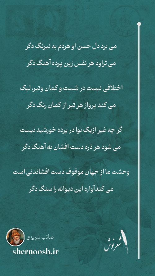 1 می برد دل حسن او هردم به نیرنگ دگر می تراود هر نفس زین پرده آهنگ دگر