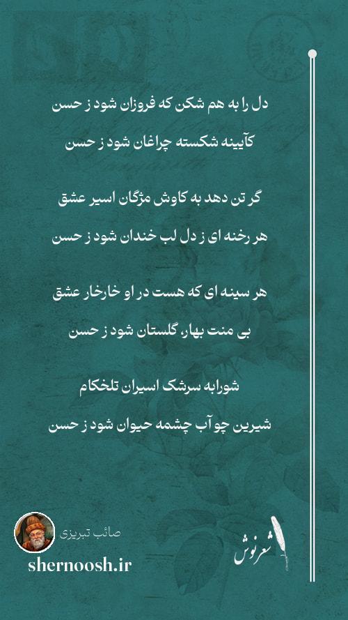 4 شورابه سرشک اسیران تلخکام شیرین چو آب چشمه حیوان شود ز حسن