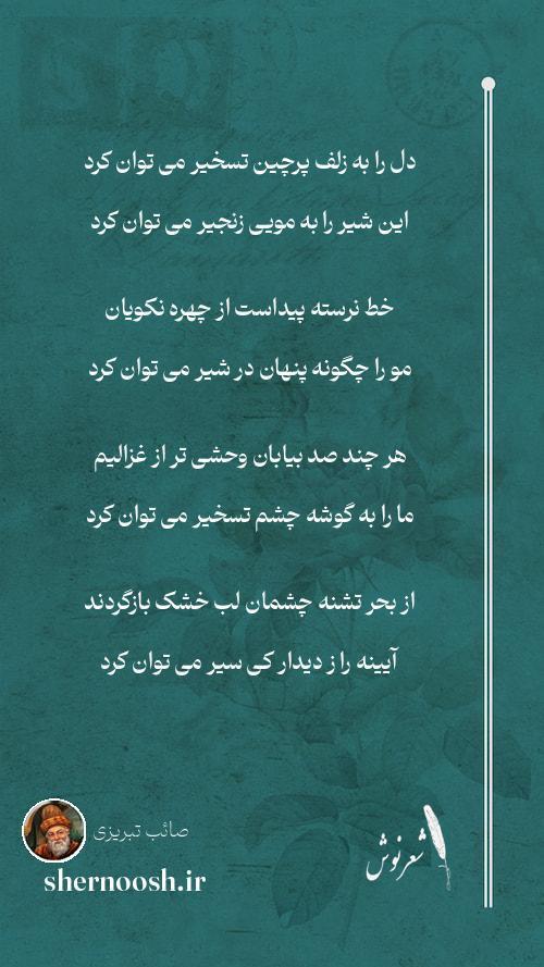 12 از درد عشق اگر هست صائب ترا نصیبی از ناله در دل سنگ تأثیر می توان کرد