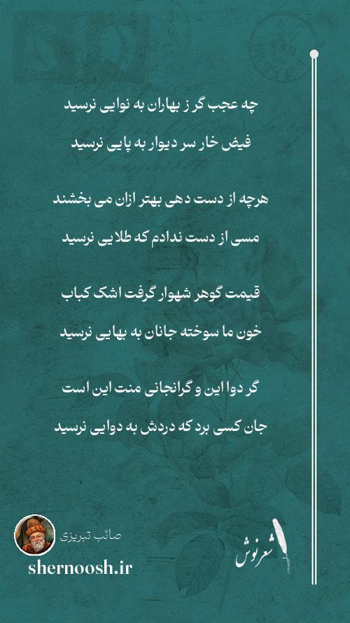 1 چه عجب گر ز بهاران به نوایی نرسید فیض خار سر دیوار به پایی نرسید