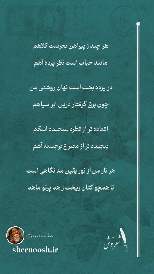4 هر تار من از نور یقین مد نگاهی است تا همچو کتان ریخت ز هم پرتو ماهم