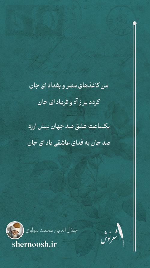 1 من کاغذهای مصر و بغداد ای جان کردم پر ز آه و فریاد ای جان