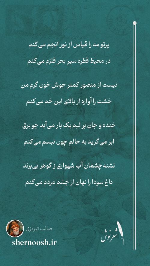 10 این جواب آن غزل صائب که میگوید فصیح «میروم در آتش و از دود پی گم میکنم»