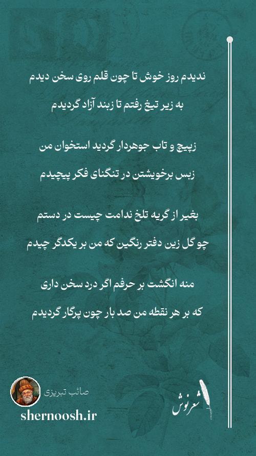 1 ندیدم روز خوش تا چون قلم روی سخن دیدم به زیر تیغ رفتم تا زبند آزاد گردیدم