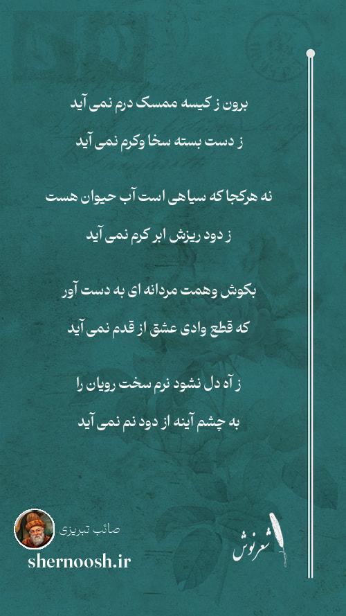 9 نشان ونامی اگر هست صائب از احسان چرا به ملک وجود از عدم نمی آید