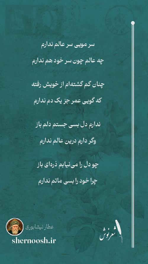 1 سر مویی سر عالم ندارم چه عالم چون سر خود هم ندارم